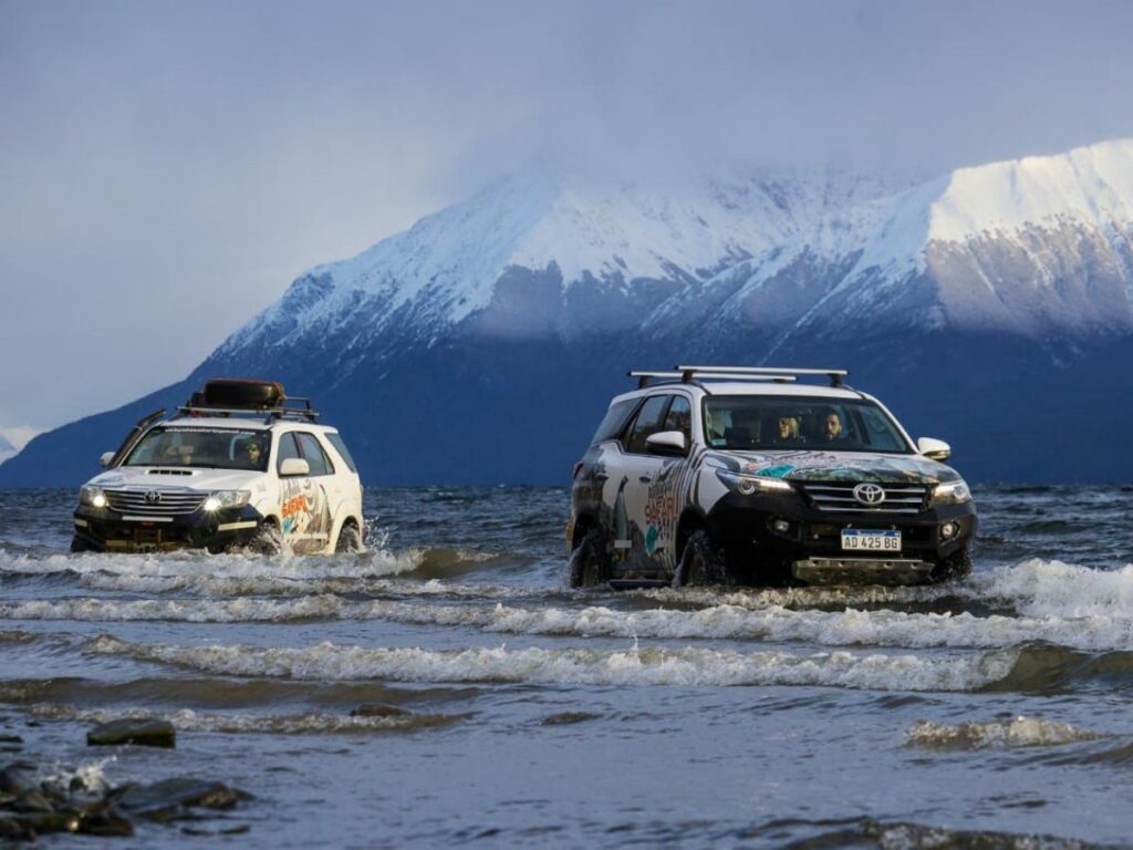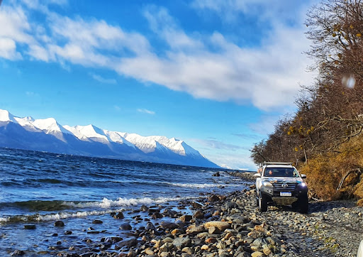 Luego comienza la verdadera aventura off-road, donde los vehículos 4x4 se adentran por caminos de barro, bosque y terrenos irregulares, llegando hasta la costa del Lago Fagnano.